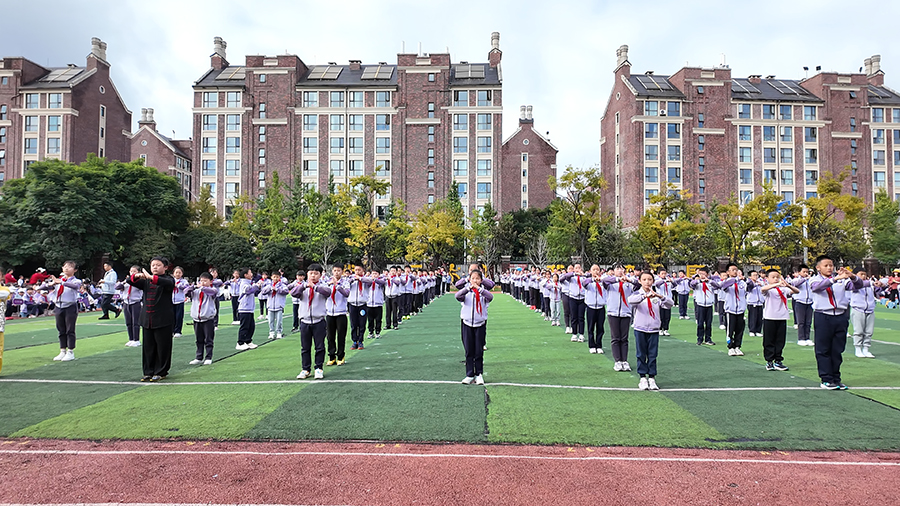 开幕式上,各年级精心编排的武术展演环节,将全场气氛推向高潮。从一、二年级《八段锦》《五步拳》到三、四年级的《彩带龙》《霍元甲》,再到五、六年级的《弟子规》《太极拳》表演,从稚嫩到娴熟,从基础到精深,六个年级的演出一气呵成,“沉稳可爱、拳脚生风、翻飞起舞、拳风刚劲、武舞相融、行云流水”汇聚一体,如同一幅徐徐展开的武术长卷,一招一式间,尽显中华武术的力与美,更展现了全校学子们的昂扬自信、薪火相传的精神风貌。