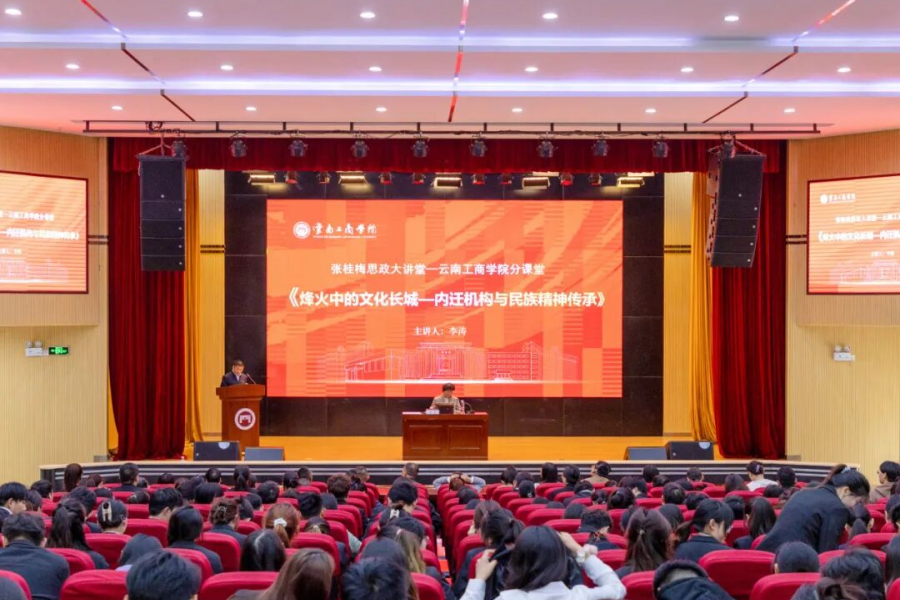 在以“烽火中的文化长城”为题的“张桂梅思政大讲堂—云南工商学院分课堂”专题讲座中,国家级档案专家、云南省档案馆史料编研处一级调研员李涛担任主讲,阐述了抗战内迁机构教育救国的历史,鼓励青年汲取力量。