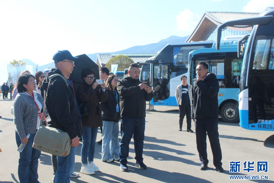 与会嘉宾在玉龙雪山新游客服务中心调研采访(11月13日摄)。新华网发