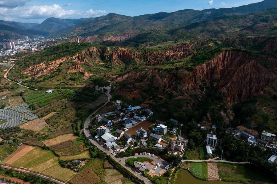 航拍南涧土林地质奇观之下西山村(10月29日 摄)。供图