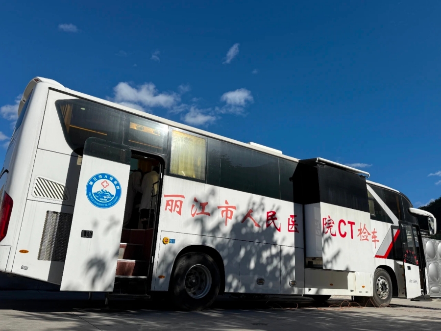 丽江市人民医院移动CT检查车走进社区(资料图)。