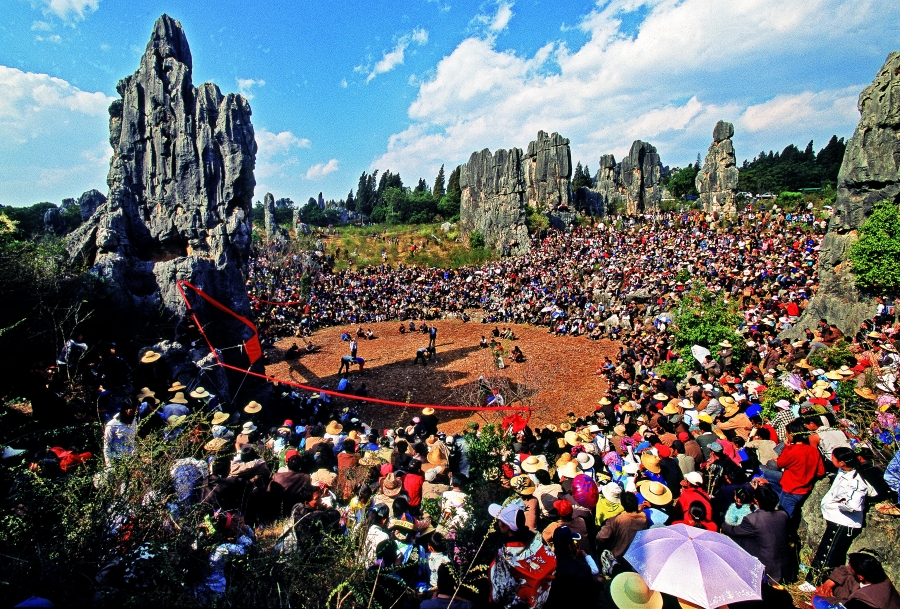 旅游业是石林的传统优势产业。当地聚焦高质量发展,出台三年行动方案,以AAAAA级石林风景区为核心,打造A级景区集群。农文旅融合、露营基地等新业态蓬勃兴起。去年,1220万人次的游客和9万人次的旅居客涌入石林,这里成为各族群众交往交流交融的广阔平台。