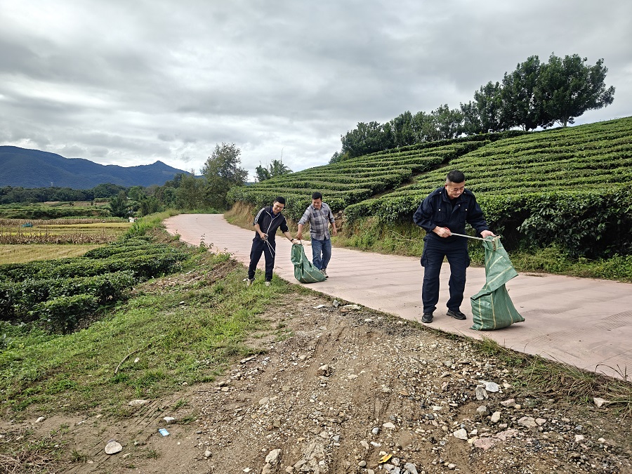 驻村人员同村组干部清理乡道的垃圾(11月5日摄)。杨学彪 摄