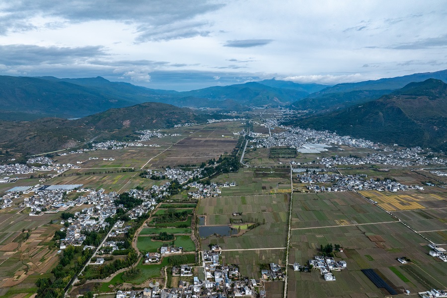 航拍大理州洱源县三营镇(10月30日摄)。
