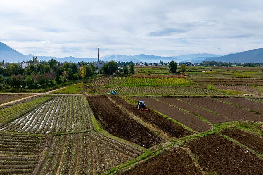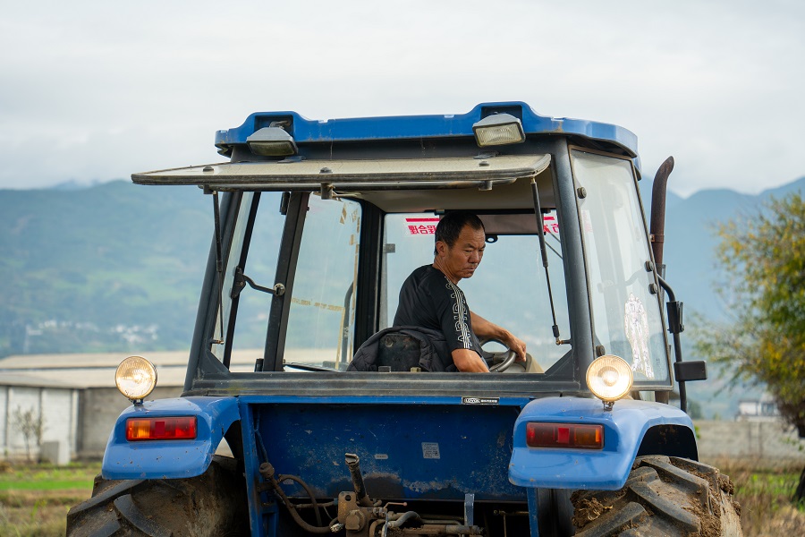 走进云南省大理白族自治州洱源县三营镇士登村,田埂间传来轰隆隆的机械声,预示着新一轮耕作的开始。48岁的烟农彭杰正熟练地操作着大型拖拉机穿梭在田间,车轮碾过松软的土地,留下整齐的耕作痕迹。