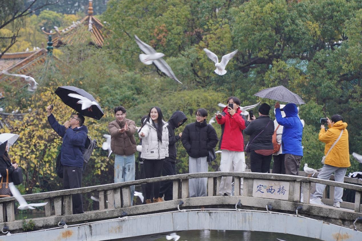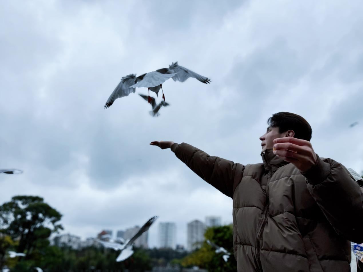 “太迷人了!我是第一次近距离地看到这么多海鸥!”拥有200多万粉丝的老挝知名博主Jojo激动地与这群“冬日精灵”合影,试图定格每一个互动瞬间。在翠湖畔,博主们与市民一同迎接这群来自远方的朋友。人鸥和谐共处的场景,成为他们眼中云南生态友好与城市温度的深刻注解——这里不仅是地理意义上的“春城”,更是充满温情的宜居之地。