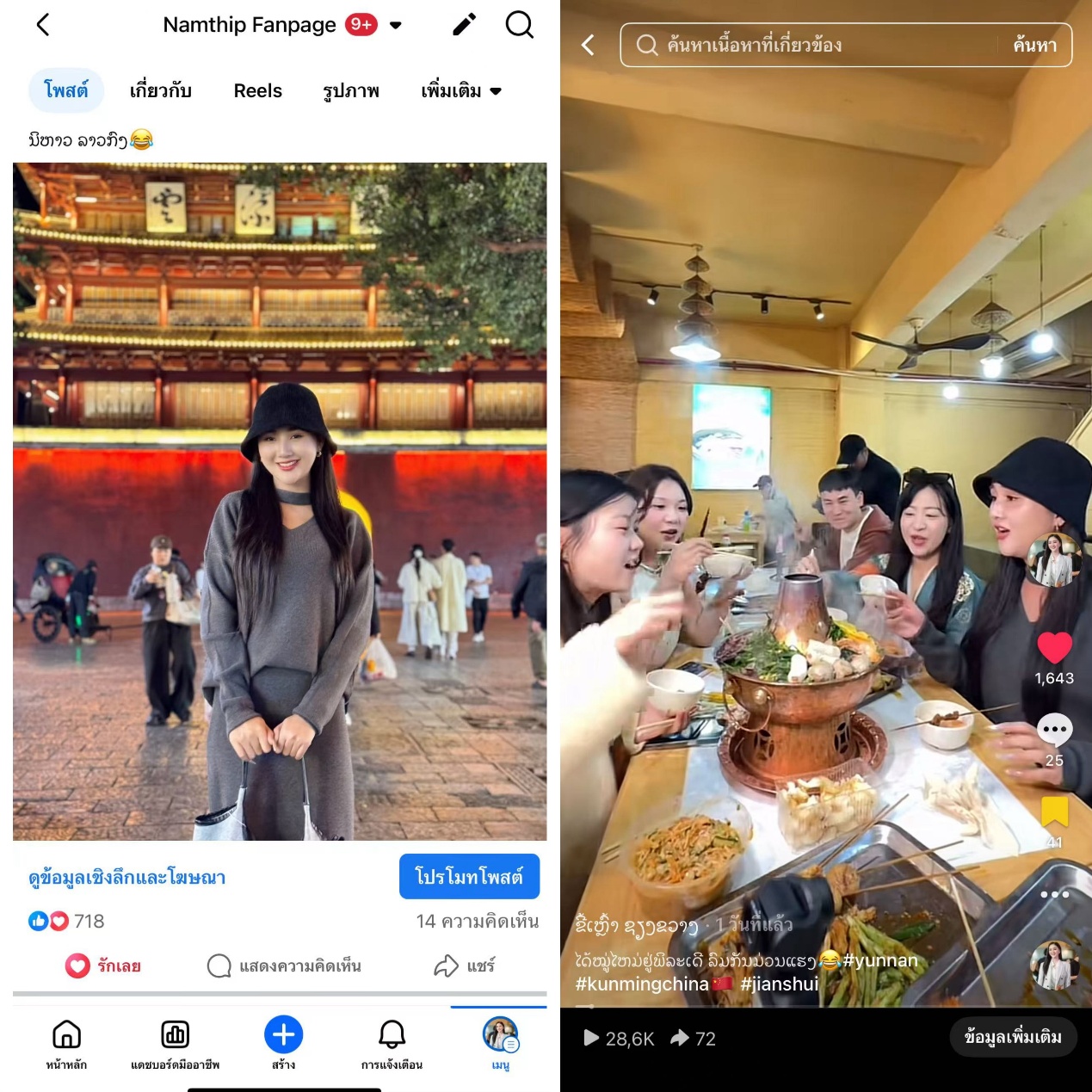 步入昆明老街,青石板路与飞檐翘角瞬间将时光拉回往昔。拥有120余万粉丝的老挝博主Parn对着琳琅满目的明制汉服与战国袍兴奋不已,陷入了甜蜜的“选择困难”:“每一套都太美了,我都想试!”而拥有60多万粉丝的Thip,在完成精致妆造后,立刻化身“古装偶像剧主角”,手机拍个不停,迫不及待地通过社交媒体展示华服魅力。