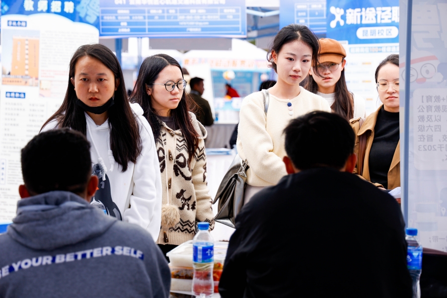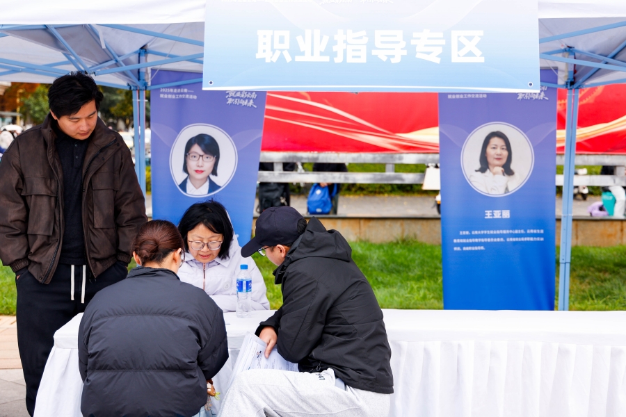 人才双选会在云南大学文典广场举行(11月18日摄)。
