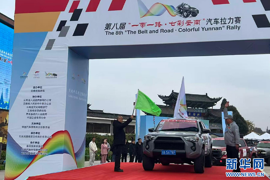 11月24日,第八届“一带一路·七彩云南”汽车拉力赛在云南民族村发车,44辆车组成的车队将途经老挝、泰国,计划于12月12日返回云南省西双版纳傣族自治州。