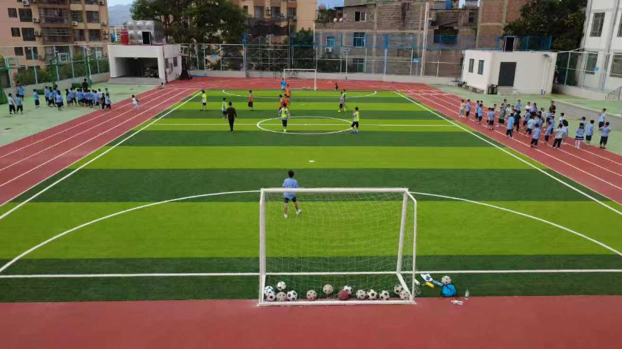 普陀区援建的足球场(9月25日摄)。饶兵 摄