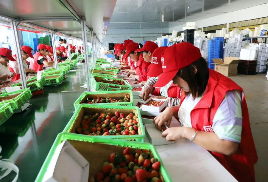 巧家草莓分拣、包装工作现场(资料图)。