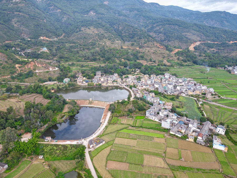 航拍弥渡县红岩镇大营村委会古城村(10月30日摄)。