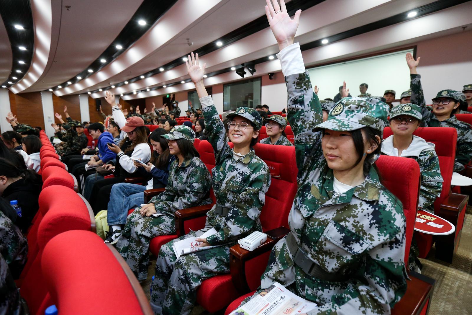“国防的主体是什么?”“我国第一艘航空母舰叫什么?”“国防教育的对象是哪些?”……除了台上激烈的竞答外,现场还开展了互动问答环节。主持人向现场观众抛出一个个与国防知识相关的问题,观众们热情高涨,纷纷踊跃举手抢答,积极参与到这场知识的互动中来。