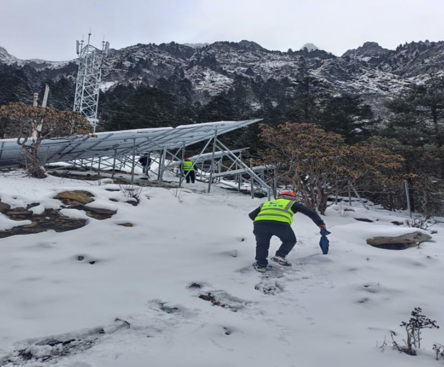 迪庆铁塔工作人员保障白马雪山方向基站(11月13日摄)。立青瓦雪 摄