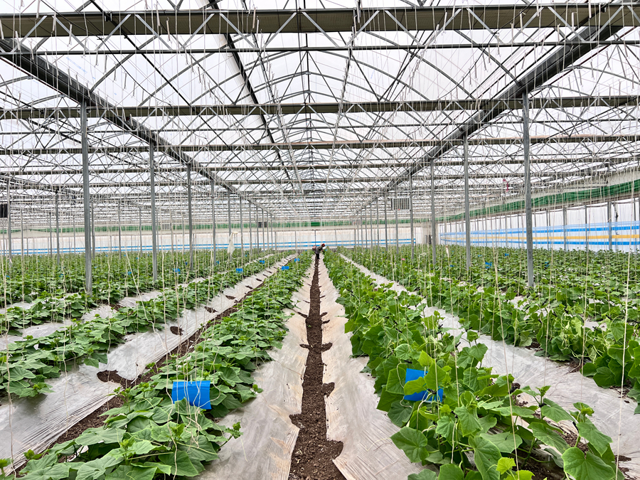 走进弥渡自然之星农业科技有限公司的有机蔬菜种植基地,363亩联栋低碳智能温室沿田垄铺开,大棚里水肥一体化管道、智能温控设备齐全。黄瓜藤蔓茁壮、番茄挂满枝头,工人们正穿梭田垄,熟练地进行挂枝、打杈作业。