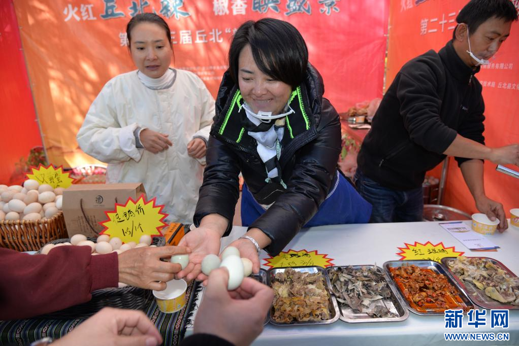 游客在丘北辣椒节上品尝美食。新华网发(李溪岩 摄)