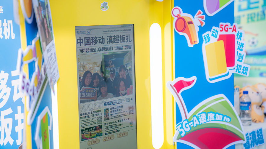 除了高速网络保障,云南移动还在揭幕战现场搭建展厅,以“滇超定制报纸机”为观众即时打印自己与滇超同框的纪念报纸。“我们还在咪咕彩媒小程序和现场为球迷们准备了‘滇超定制视频彩铃’,欢迎球迷们一键设置滇超主题AI视频作为专属应援彩铃。”张滔介绍。
