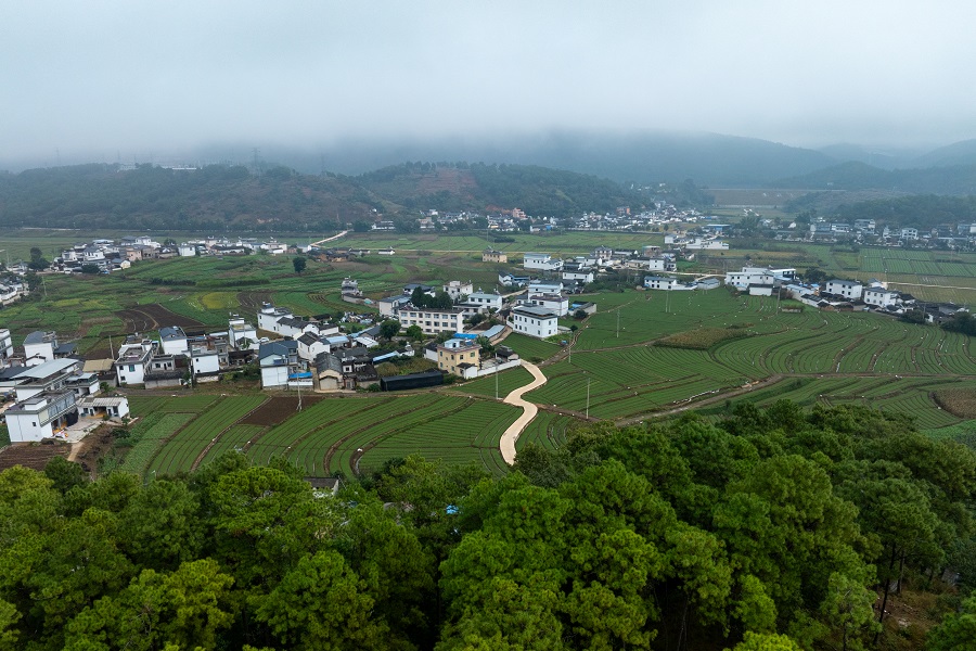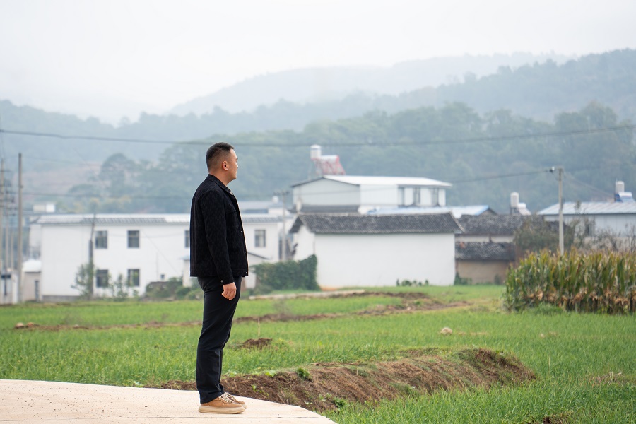 在云南省保山市施甸县水长乡水长村的连片土地旁,“00后”青年杨坤森正仔细查看田间作物,曾经他是建筑行业的技术员,如今已在家乡的田野里找到了新的人生坐标。