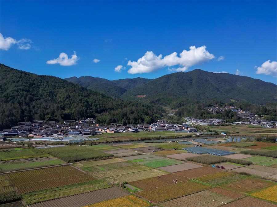 航拍腾冲市界头镇永乐村(11月13日摄)。