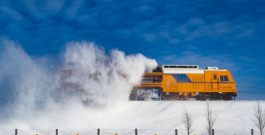 GCX-1000轨道清雪车进行除雪作业(资料图)。