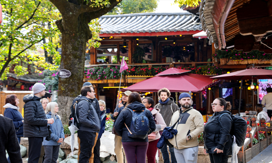 上午10时,薄雾笼罩的丽江古城在冬日暖阳中渐渐醒来,操着全国各地口音的门店老板,笑脸相迎八方游客,茶香、果香、烟火香交织成古城独有的待客图景。