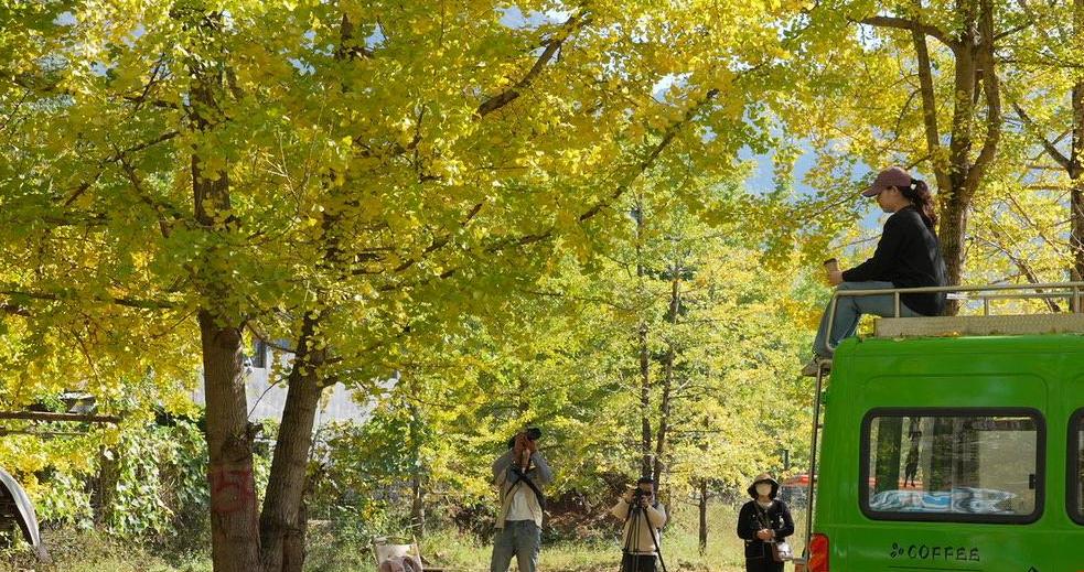 金黄的银杏树下,一批特色咖啡店陆续亮相。来自芒市的游客方磊说:“在银杏树下喝咖啡,感觉很好,风景也很不错。”