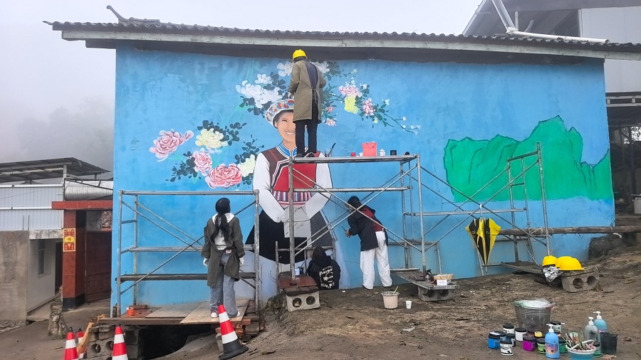 2025年9月,在“技能小院”“科技小院”正式挂牌前,云南技师学院(云南工贸职业技术学院)建筑与工艺技术学院的师生们已作为先行者行动起来。他们发挥学院环境艺术、建筑装饰等专业优势,结合维西县民族文化与生态特色,将“墙绘艺术+乡村治理”融合创新,在拉日村梁子组完成主题墙绘260平方米,让斑驳墙面变身文化长廊,为乡村巷陌注入艺术活力,助力建设秀丽宜居的绿美乡村。