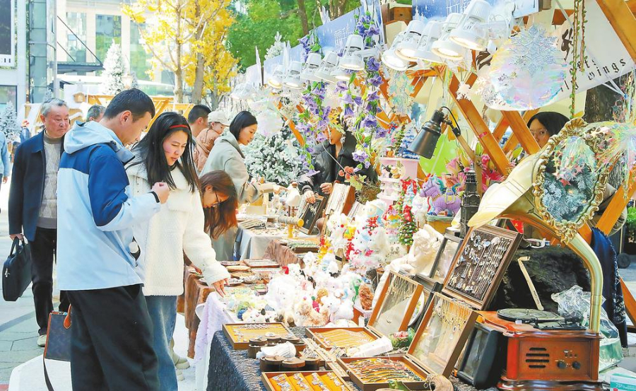 连日来,在昆明顺城购物中心,一场别开生面的冰雪主题创意集市“冬梦之集”拉开了岁末消费季的预热序幕。创意集市现场,20余个特色摊位汇聚了手作工艺品、非遗文创、冬季服饰、暖冬美食等多元业态。市民和游客穿行其间,或驻足拍照,或选购商品,现场氛围热闹而温馨。记者 杨峥 摄