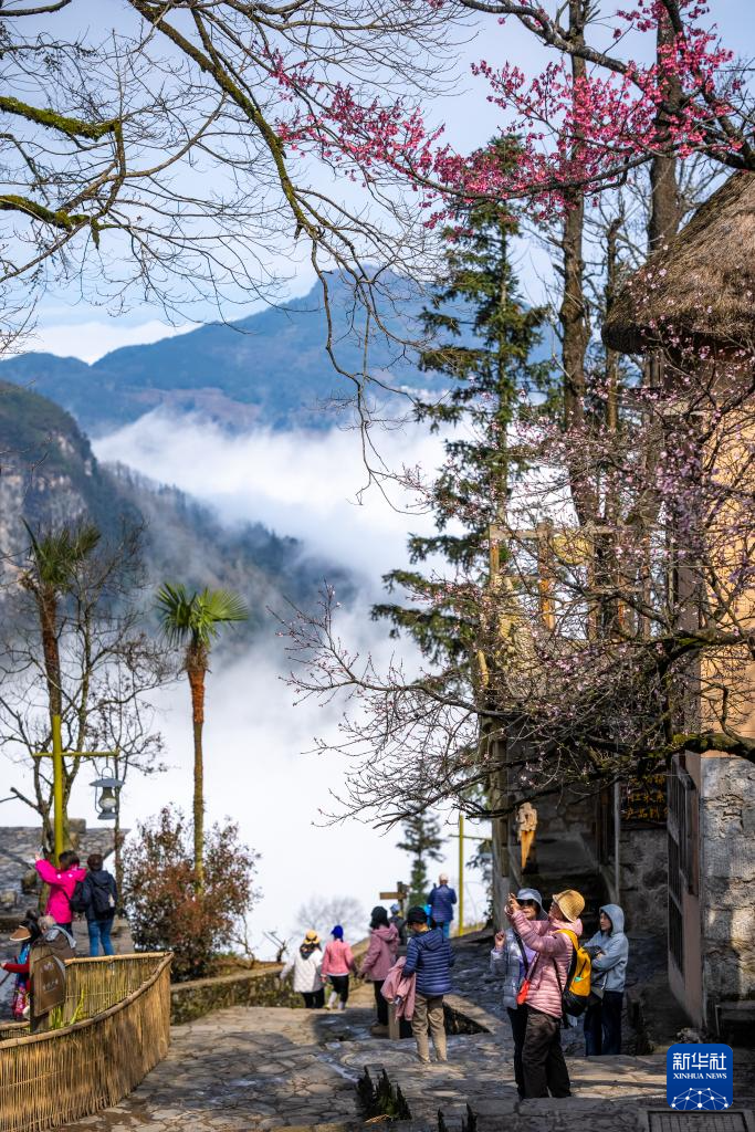 2月26日,游客在云南省元阳县阿者科村观光游览。新华社记者胡超 摄
