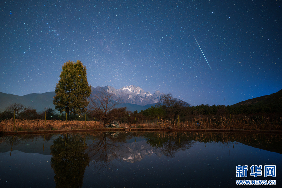一颗流星划过玉龙雪山上空(12月13日摄)。新华网发(戴建峰 摄)