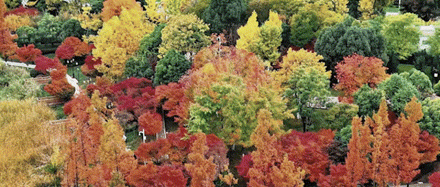 初冬,在云南省昭通市昭阳区省耕国学文化公园里,层林之中,亭台上的飞檐翘角与五彩叶片相映,色彩斑斓,充满诗意,宛如画卷。(李剑 毛治府)