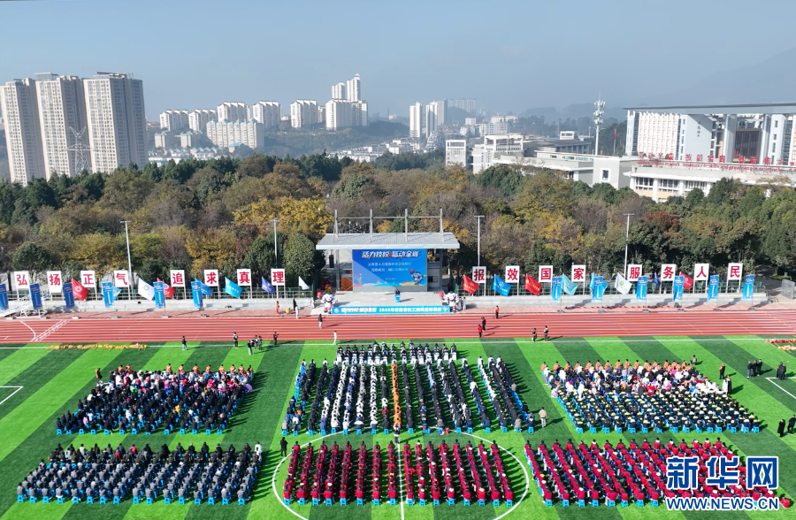 云南技师学院(云南工贸职业技术学院)师生们带来文体展演(12月15日摄)。新华网发(徐华陵 摄)