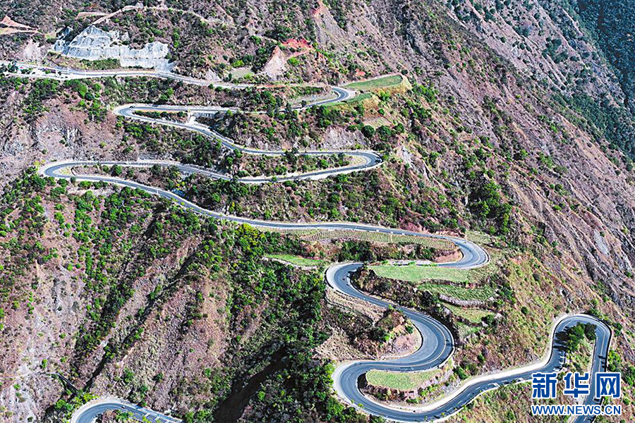 参赛选手在拥有“魔鬼公路”之称的绿汁72道拐盘山公路上骑行。(资料图)。新华网发(邓星瑞 摄)