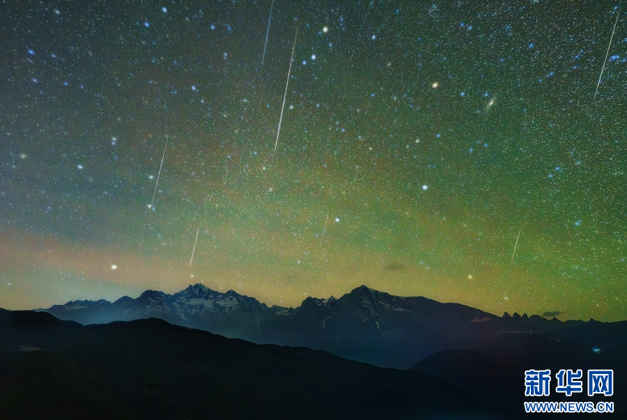 近日,双子座流星雨迎来极大值。在云南省丽江市,漫天流星与壮丽的玉龙雪山美景交相辉映,如梦似幻。