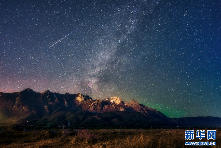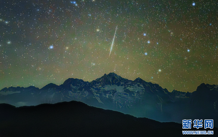 流星划过玉龙雪山(12月13日摄)。新华网发(李思翰 摄)