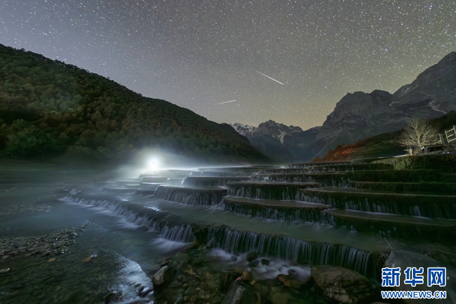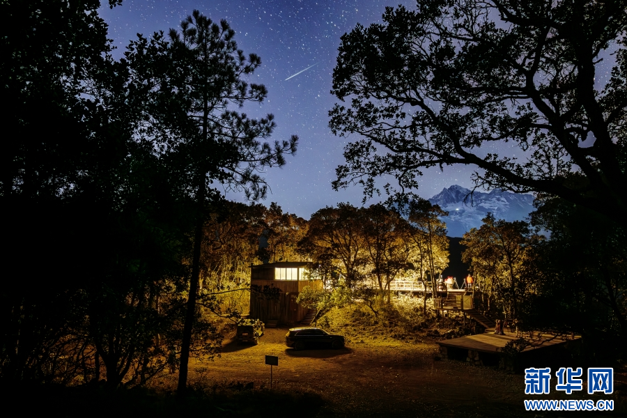 在玉龙雪山甘海子,流星划过天际(12月13日摄)。新华网发(戴建峰 摄)