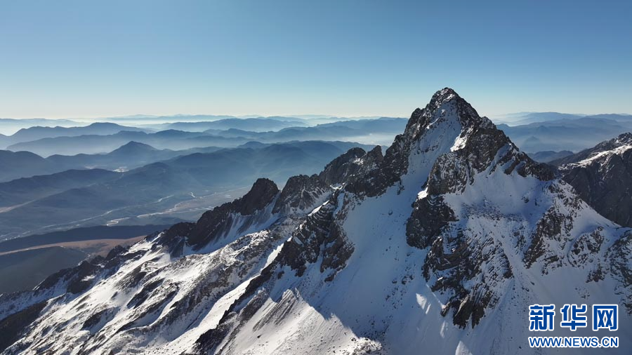 冬日里的云南省丽江市玉龙雪山,澄澈蓝天与皑皑白雪相互映衬,远处山峦叠嶂,云雾缭绕,宛如一幅山水画,美不胜收。(完)(范芳钰 李浩)