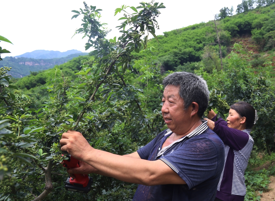村民正在采收花椒(9月16日摄)。高宝仙 摄