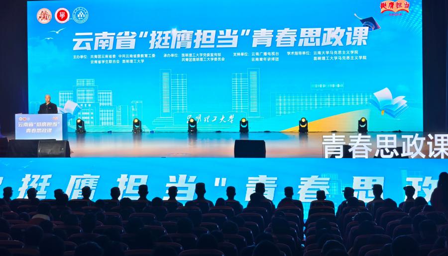 12月19日,云南省“挺膺担当”青春思政课第三讲在昆明理工大学呈贡校区红土会堂内开讲。本次活动以“让青春在强国强军事业中焕发光彩”为主题,1400余名青年学子齐聚一堂,在思想碰撞与精神洗礼中,将“请党放心,强国有我”的青春誓言镌刻于心。