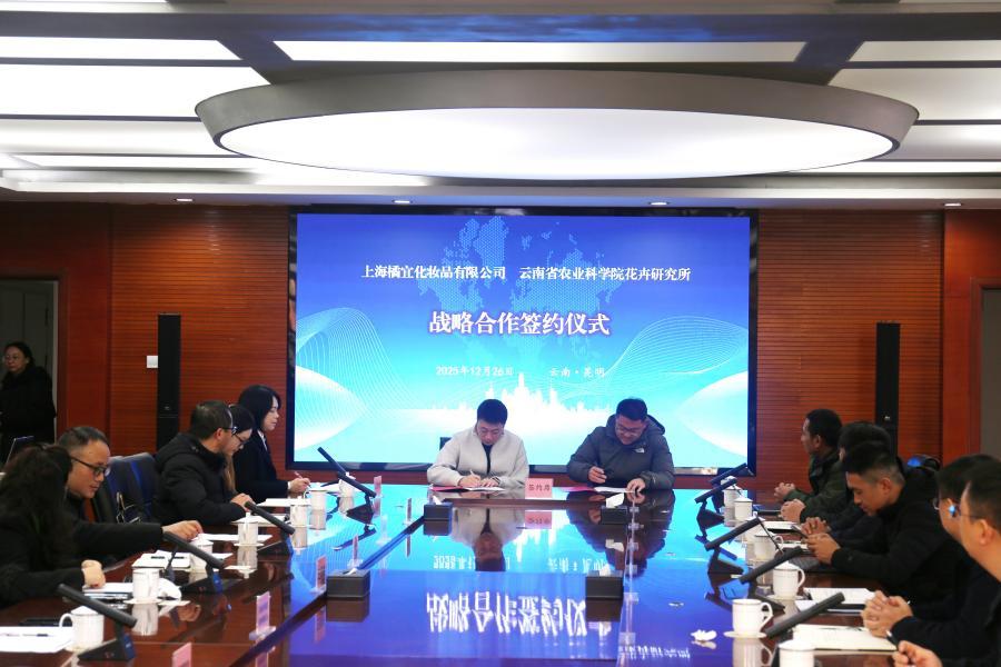 云南省种子种业联合实验室与上海橘宜化妆品有限公司签署战略合作协议(12月26日摄)。