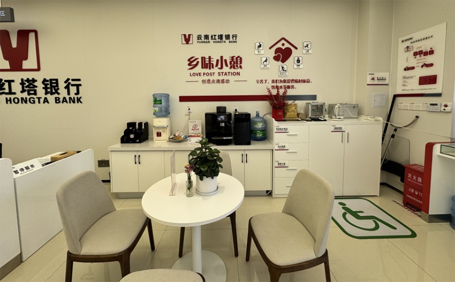 为深入落实“金融为民、服务为本”理念,推动金融服务更加贴近民生、贴近群众,云南红塔银行股份有限公司昆明北市区支行(以下简称“云南红塔银行昆明北市区支行”)在营业大厅内打造了一处充满生活气息与人文关怀的便民服务空间——“乡味小憩”,为老年客户、环卫工人、快递外卖员、社区交通秩序维护人员等群体提供了可以歇脚、取暖、消暑、解渴的“城市驿站”,让金融服务在专业之外,更添一份温度。