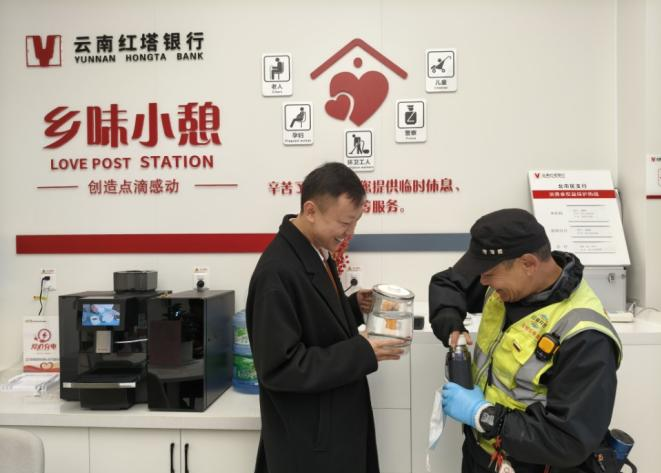 为确保服务常态长效,云南红塔银行昆明北市区支行将“乡味小憩”纳入网点规范化服务管理,每天安排专人负责补充饮用水、茶叶及各类便民物资,做到物资不断档、服务不打烊。