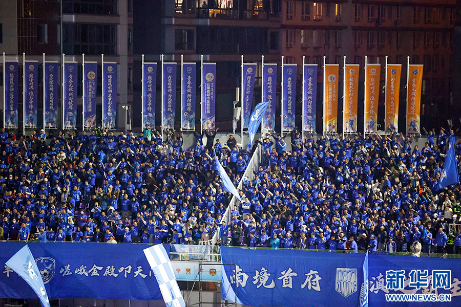 昆明主场球迷组成“蓝色海洋”(12月27日摄)。新华网发(杨桢宇 摄)