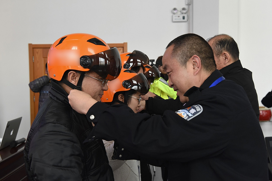深入辖区各场所开展安全头盔宣传活动(资料图)。