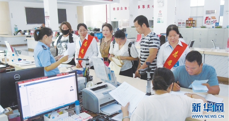 志愿者为前来咨询办事的群众和企业提供帮助(资料图)。新华网发(元谋县政务服务管理局 供图)