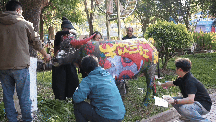 本次活动中,艺术家以水牛为“行走的画布”,绘上花卉、民族少女、茶叶及咖啡等形象。现场吸引众多客商、游客和居民驻足观赏。