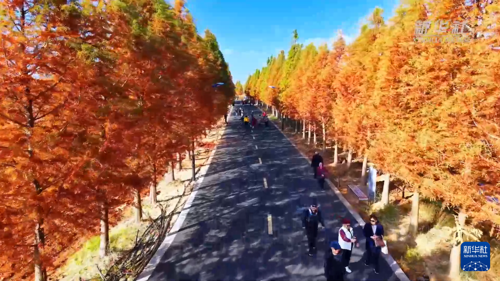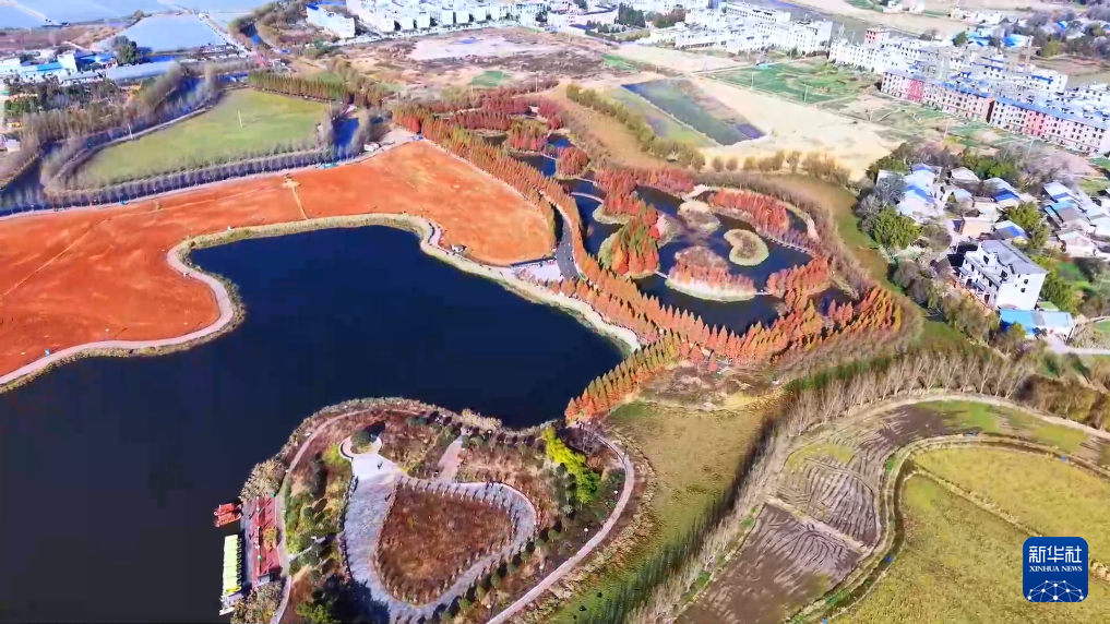 冬日,云南省曲靖市麒麟区田园桂花湿地的水杉林褪去绿意,呈现金、黄、红等多种色彩,铺展开一幅色彩斑斓的生态画卷。