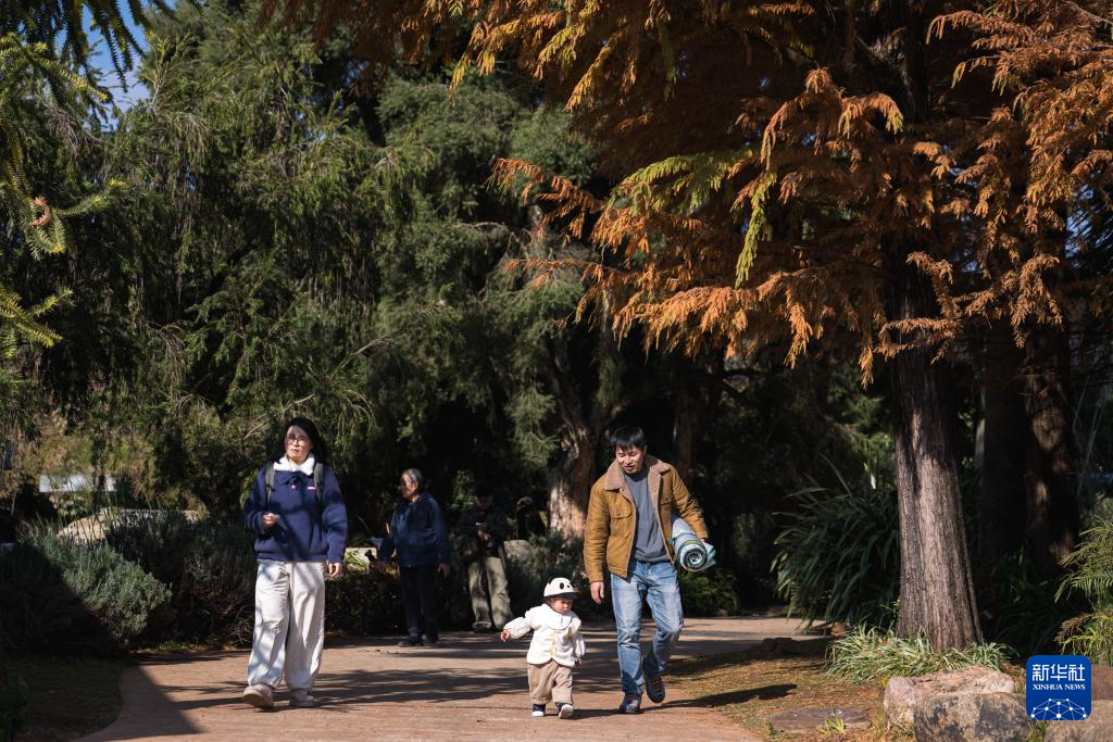 1月10日,云南昆明天气晴好,市民游客在冬日的暖阳中漫步于昆明植物园,领略自然美景,尽享惬意悠闲的周末时光。