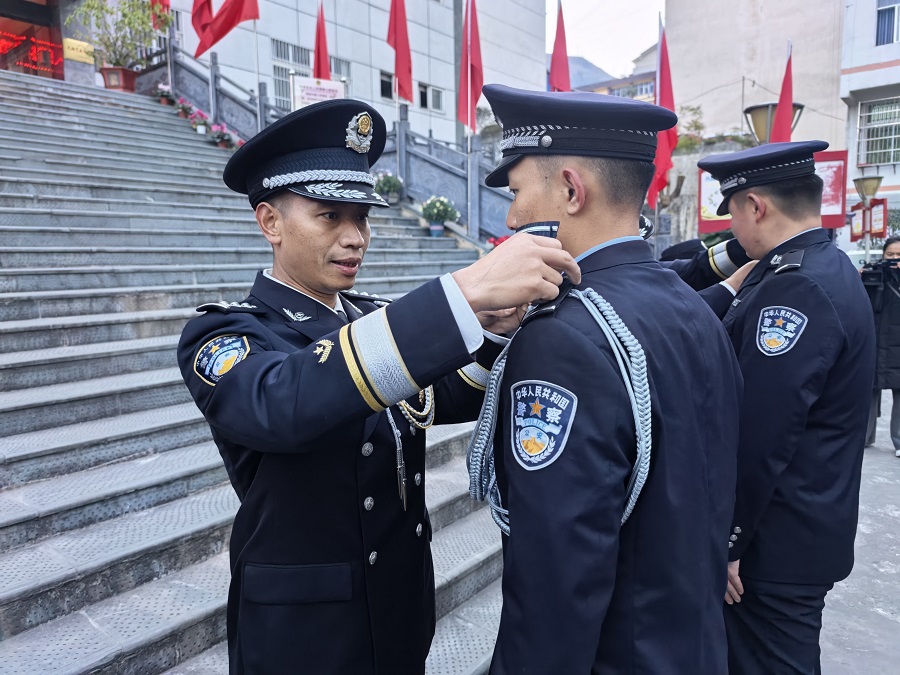 仪式上,举行了庄重的荣誉仪式。州局党委班子成员为新入警民警代表颁发了从警荣誉证书,为警衔晋升培训合格的民警代表授予新警衔,为从警满20周年、30周年的民警代表颁发了从警荣誉牌。这一刻,新老交替,使命传承,激励着全体民警不忘初心、砥砺前行。