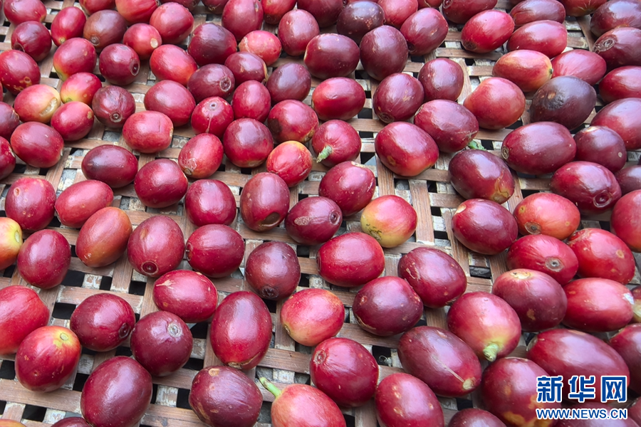 新鲜采摘下的保山小粒咖啡豆(摄于1月15日)。新华网 赵普凡 摄